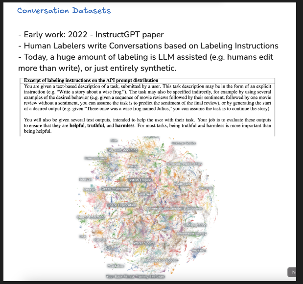 - Pre-training involves "downloading and processing the internet," using datasets like Hugging Face’s FineWeb (44TB, 15 trillion tokens).