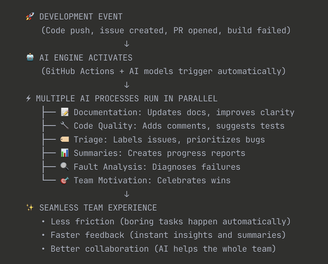 GitHub Next has a name for what's coming next: Continuous AI1. It's the same idea, but for team collaboration. Instead of just automating our code pipeline, we're automating how we work together.