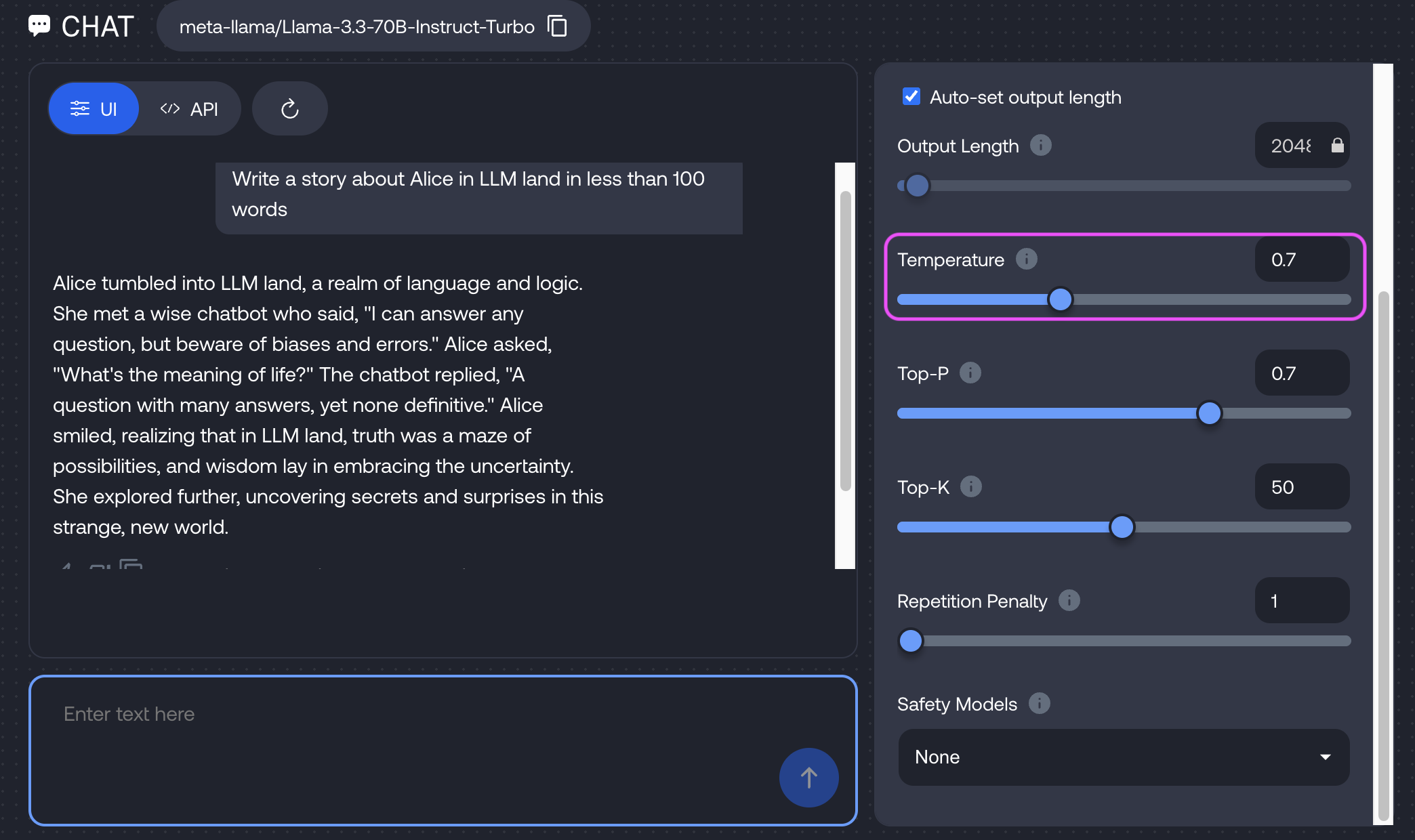 - Temperature: How “spicy” the AI’s choices are.