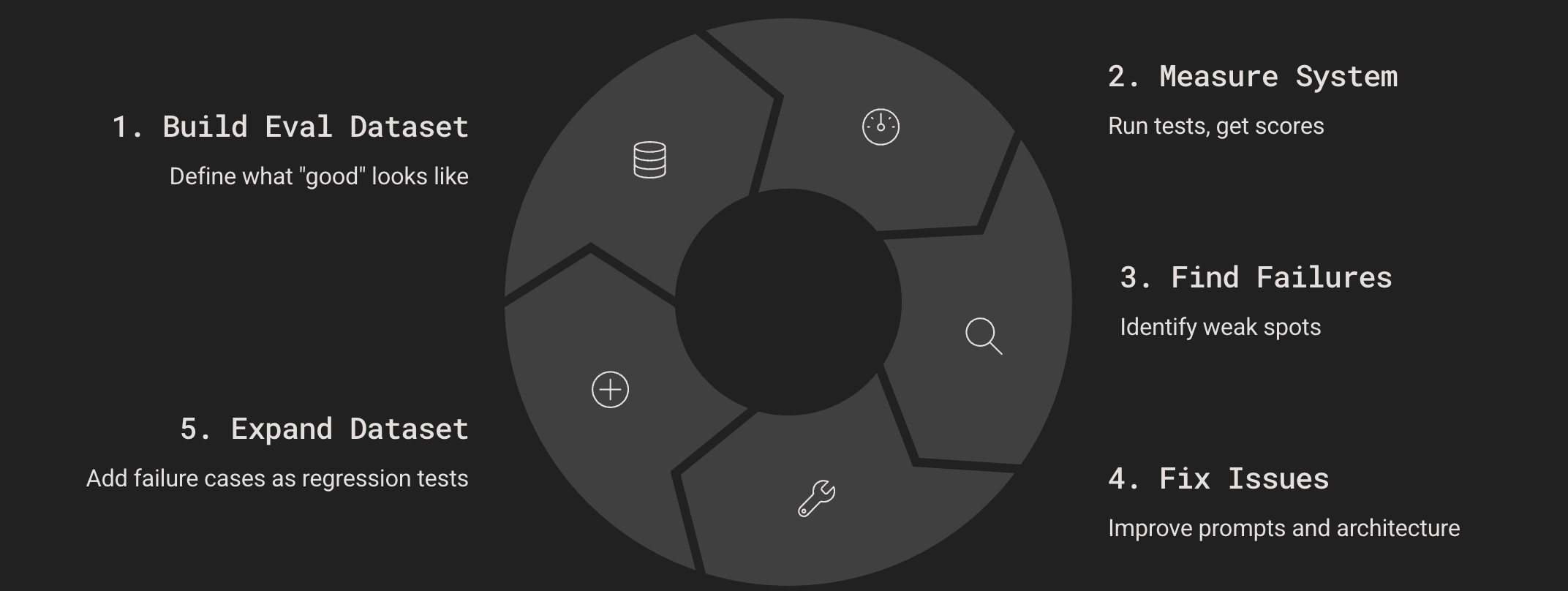 - The eval flywheel compounds. Each cycle improves both your system and your ability to evaluate your system. Start the flywheel early.